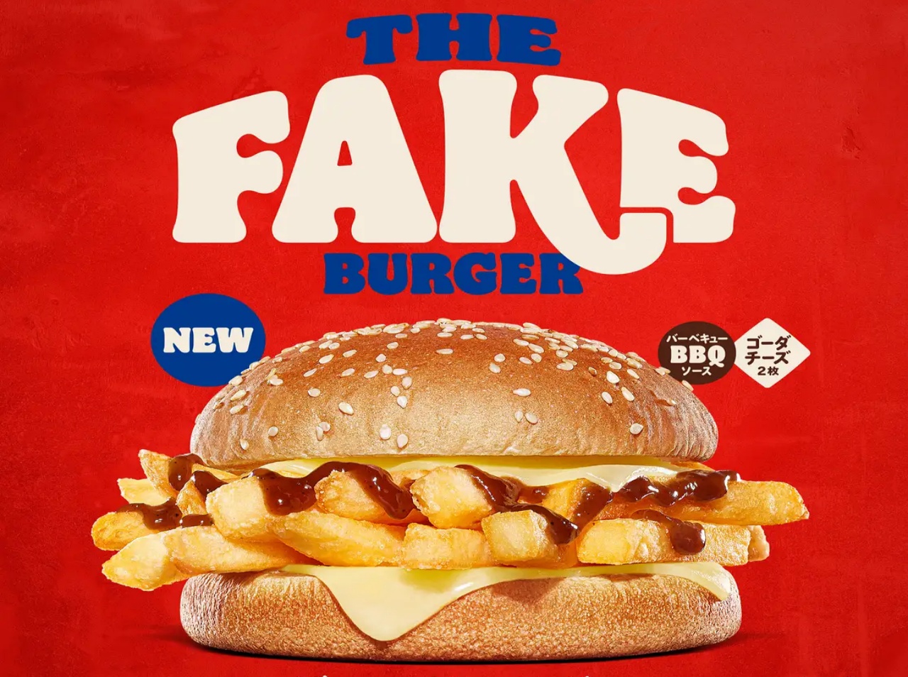 Burger King Japan also posted updated images of the "Fake Burger" without the blur effect that hid what was inside the sandwich. The updated clear picture revealed a burger with french fries instead of the usual beef patty.