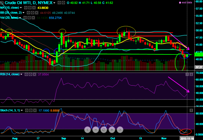 WTI crude oil futures (CL!1) extended losses from last week's close at 40.74 to 40.58, but that was the time when bulls became alert to push the prices higher to 41.71 (our last week's crucial support area).