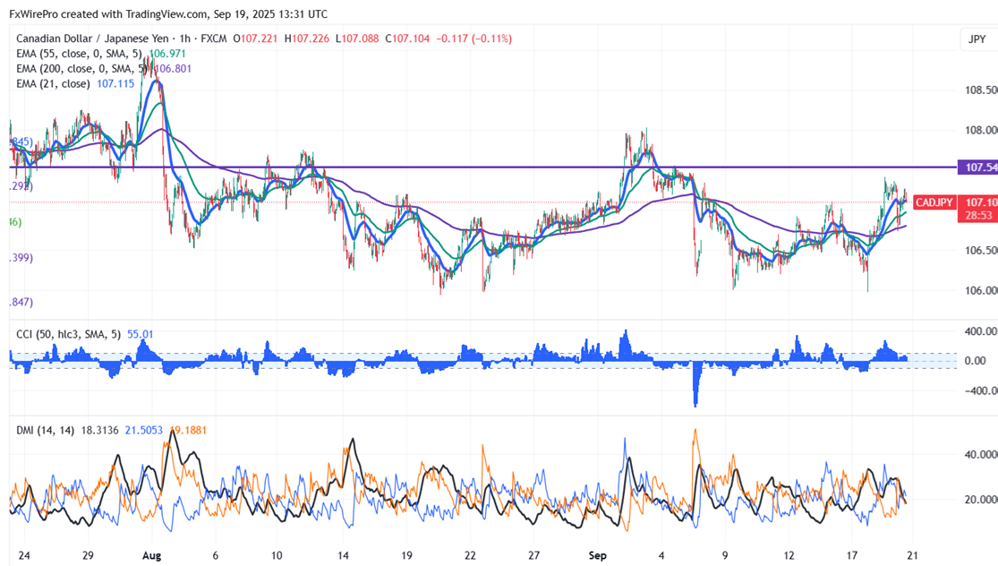 CAD/JPY pared some of its gains after dismal Canadian retail sales. It hits an intraday low of 107.08 and is currently trading around 107.128.