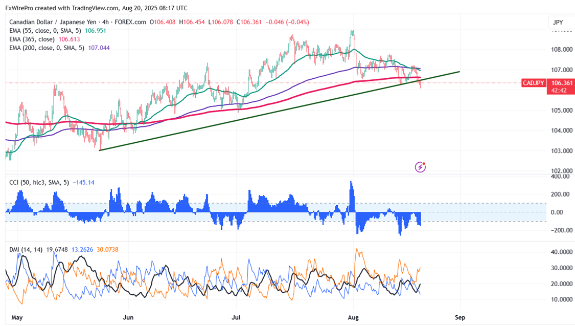 CAD/JPY pared some of its gains after the Canadian CPI data. It hits an intraday low of 106.07 and is currently trading around 106.273.