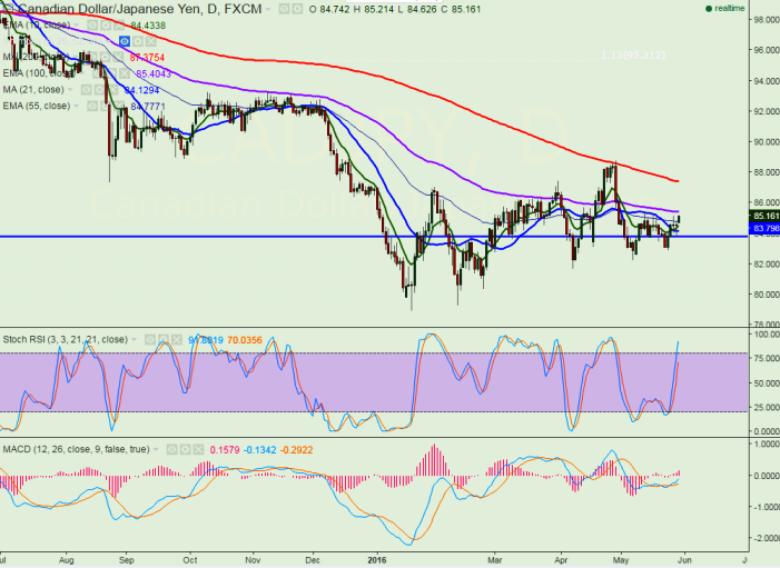 - CAD/JPY has recovered after making a low of 83.89 yesterday. The pair opened around 84.74 today morning and slightly jumped till 85.19. It is currently trading around 85.10.