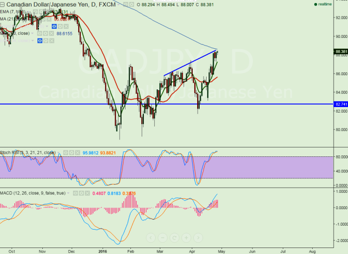 - The pair has made a high of 88.49 at the time of writing and declined from that level. It is currently trading around 88.34.
