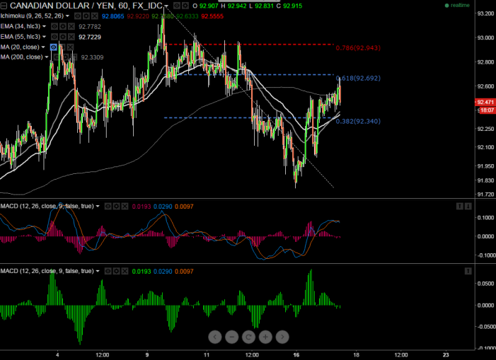 - CAD/JPY has recovered till 92.67 at the time of writing and declined till 91.78. It is currently trading around 92.60