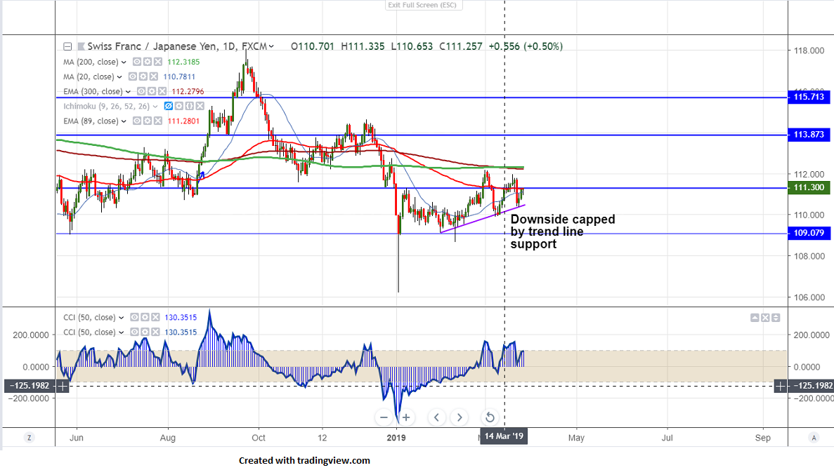 On the higher side near term resistance 111.27 (89- day EMA) and any violation above will take the pair to next level till 111.95/112.20.