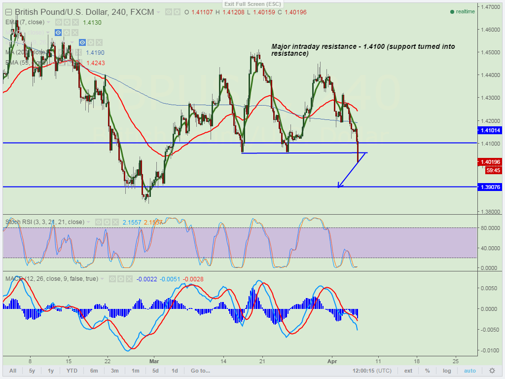 - Major Intraday Resistance - 1.4010 (Support turned into resistance)