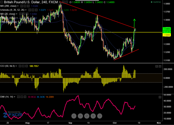 - GBP/USD is facing trend line resistance around 1.5500 (trend line joining 1.5818 and 1.5658) and nay break above confirms major trend reversal, a jump till 1.5580/1.5600/1.5650 is possible.