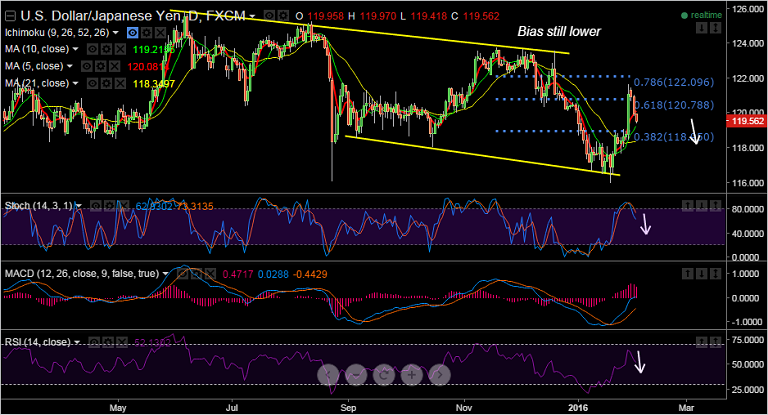 FxWirePro:USD/JPY neutral in the near-term, scope for downward resumption