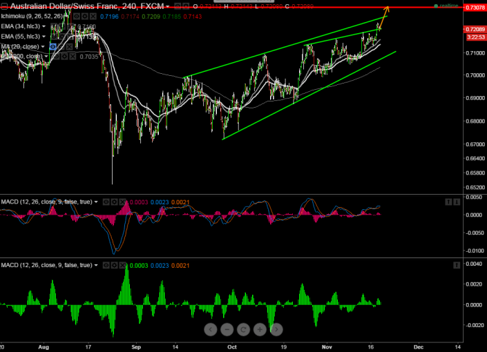 - AUD/CHF has made a temporary high around 0.7238 and slightly retreated from that level. Any break above temporary high will take the pair to new level 0.7300.
