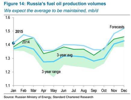 - Data from Russia's Ministry of Energy shows that fuel oil output increased by 4% in 2014.