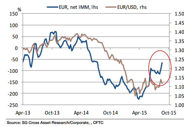 EUR/USD escaped the narrow trading range last month, scaling a 1.1714 high on 24 August. Short IMM positions have been cut to the lowest level in over a year. The biggest EUR gains have come against the commodity currencies, but a Fed rate hike should trigger EUR/USD profit taking. Support 1.10. The EUR attracted strong support after the devaluation of the CNY and the selloff in equity markets. In trade weighted terms, the euro is up over 3% over the past month.