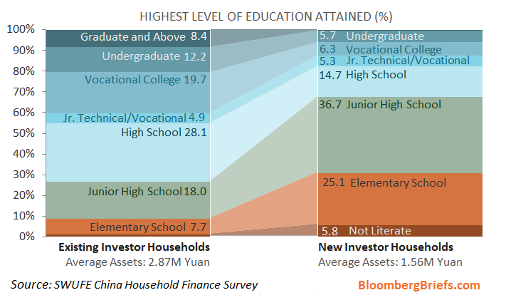 - Finds that the biggest new investors in China's equity markets have below a high school education and relatively low levels of asset ownership