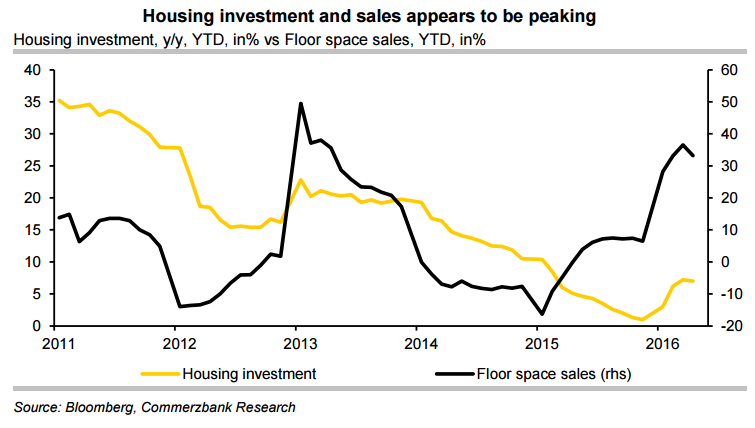 "We think that the property market will not become a significant obstacle for further policy easing in China. We think that China’s property market is likely to cool down in the coming quarters, which will increase the downside risk to China’s growth outlook as a result." said Commerzbank in a report.