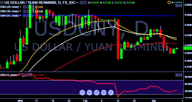 Trading call: Go long on USD/CNY around 6.51, stop loss 6.4910 and target 6.5758 levels.
