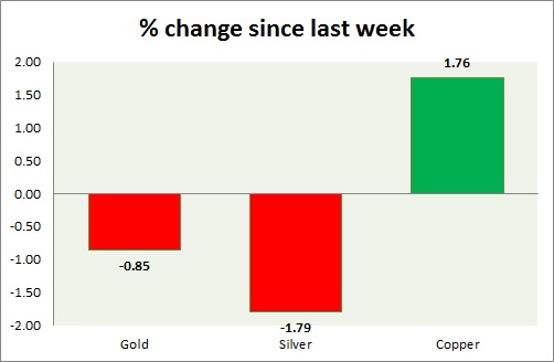 The metal pack is mixed today. Performance this week at a glance in chart & table -