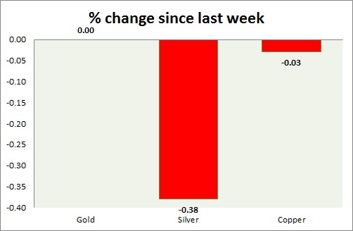 The metal pack is up today. Performance this week at a glance in chart & table -