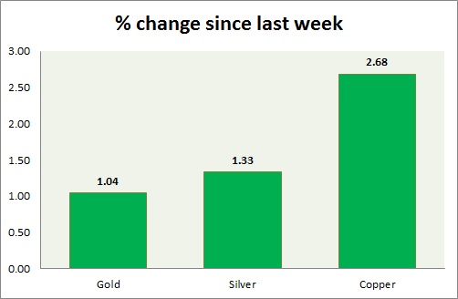 The metal pack is up today. Performance this week at a glance in chart & table -