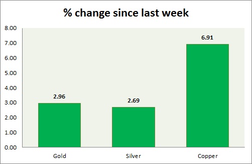The metal pack is mixed today. Performance this week at a glance in chart & table -