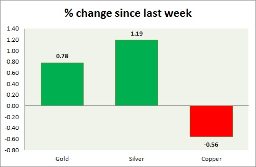 Metal pack is mixed, while precious is up, industrial is down. Performance this week at a glance in chart & table -