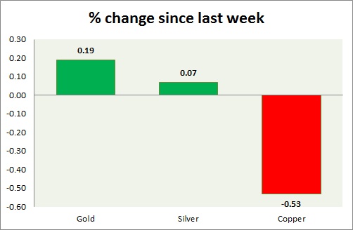 Metal pack is green today. Performance this week at a glance in chart & table -