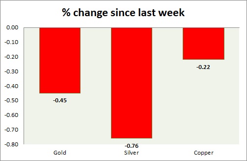 The metal pack is mixed today. The performance this week at a glance in chart & table -