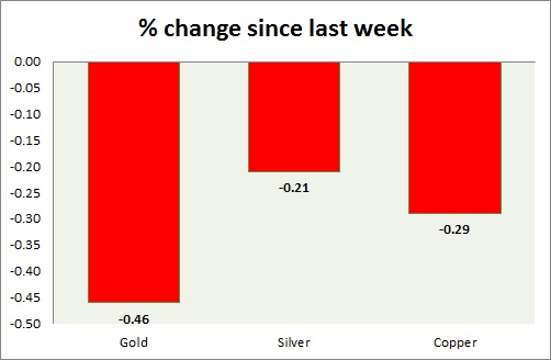Metal pack is red today. Performance this week at a glance in chart & table -