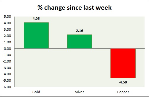 Metal pack is mixed today, silver and copper is down, while gold is up. Performance this week at a glance in chart & table -