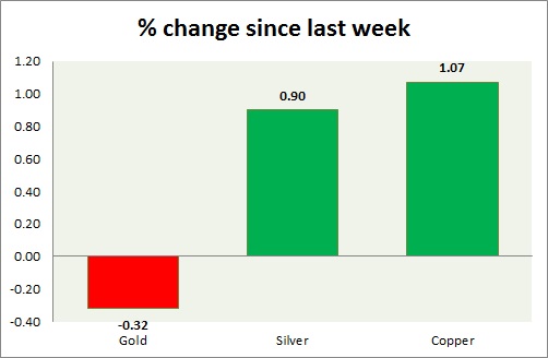 The metal pack is up today. Performance this week at a glance in chart & table -