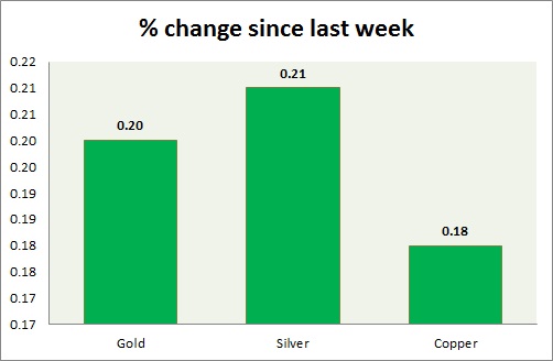 The metal pack is down today. Performance this week at a glance in chart & table -