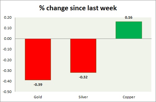 The metal pack is down today. Performance this week at a glance in chart & table -