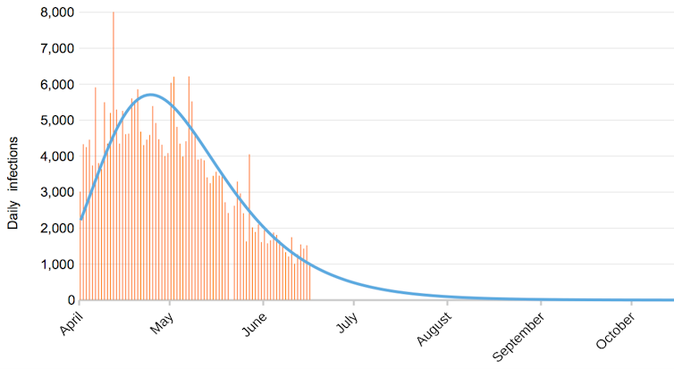 Inevitably, governments under-report their infection numbers, depending on the extent to which they are testing. But this imperfect data is still useful: what is important is not the absolute numbers but the point at which the daily rate peaks. I’ve used the data reported by the countries up to June 16, and the same model could be applied to any country.