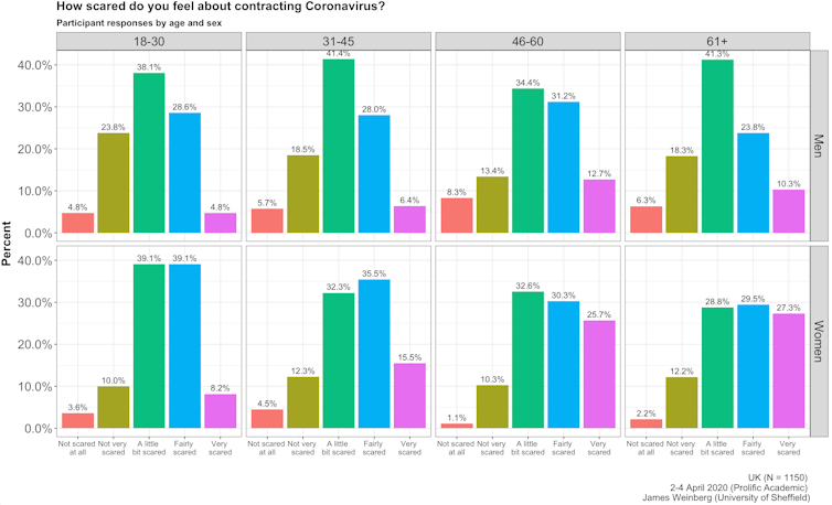 A few weeks into the UK’s coronavirus lockdown, new survey data suggest that 45% of the UK public feels “fairly” or “very” scared about contracting coronavirus. But it’s also clear that some people continue to flout public health guidelines and lockdown protocol.
