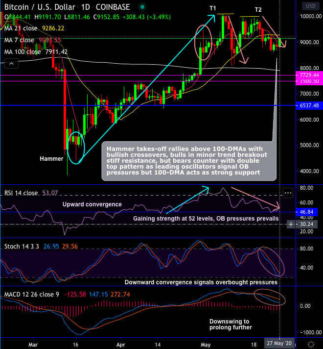 Technically, hammer takes-off rallies above 100-DMAs with bullish crossovers, bulls in minor trend breakout stiff resistance, but bears counter with double top pattern as leading oscillators signal OB pressures but 100-DMA acts as strong support