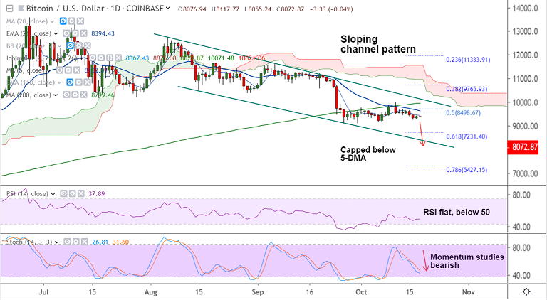Break above 5-DMA finds next major resistance at 21-EMA at 8394. Bearish invalidation only above 200-DMA.