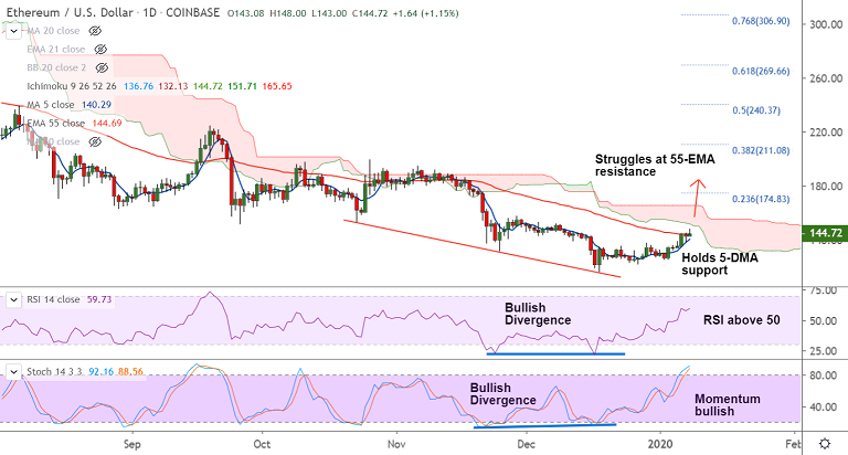 ETH/USD was trading 1.17% higher on the day at 144.77 at 05:40 GMT, after closing 0.77% lower in the previous session.