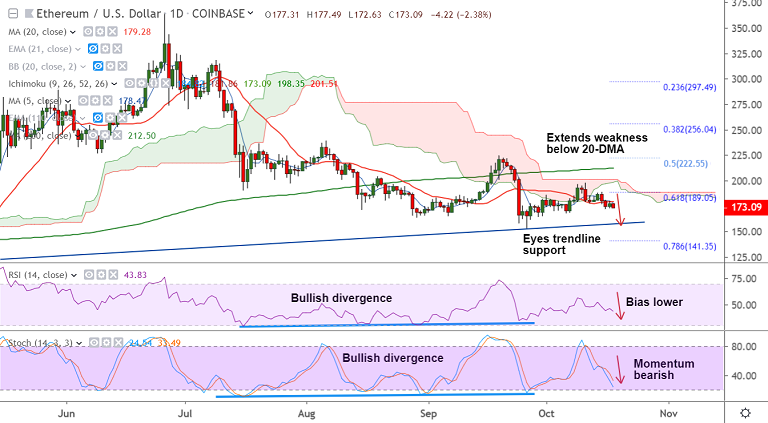 ETH/USD struggles to extend recovery above 179 mark, bias remains bearish.