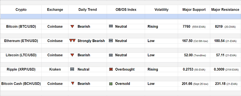 Major Cryptocurrency Daily Trend/ Technical Outlook