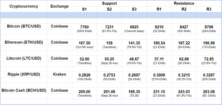 Major Cryptocurrency Intraday Support Resistance Levels
