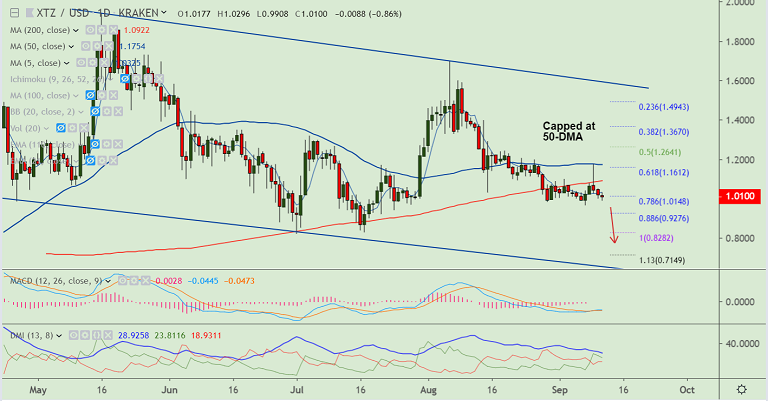 XTZ/USD was trading 0.93% lower on the day at 1.0093 at 08:30 GMT.
