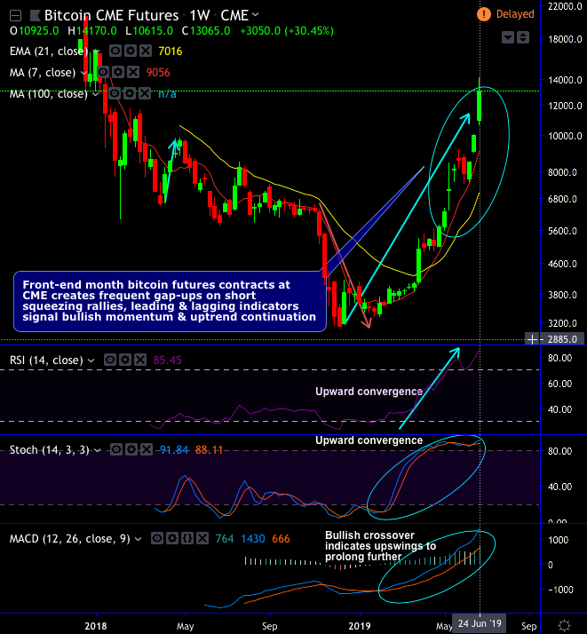 Now, take a look at the above technical charts of CME BTC futures of front-end month contracts, having risen so sharply and swiftly, one can easily make out that the pioneer cryptocurrency has created considerable gaps quite often if you plot the technical charts of CME’s Bitcoin Futures contracts of near month deliveries (2ndchart). It is nothing new but owing to the short squeeze trading activities.