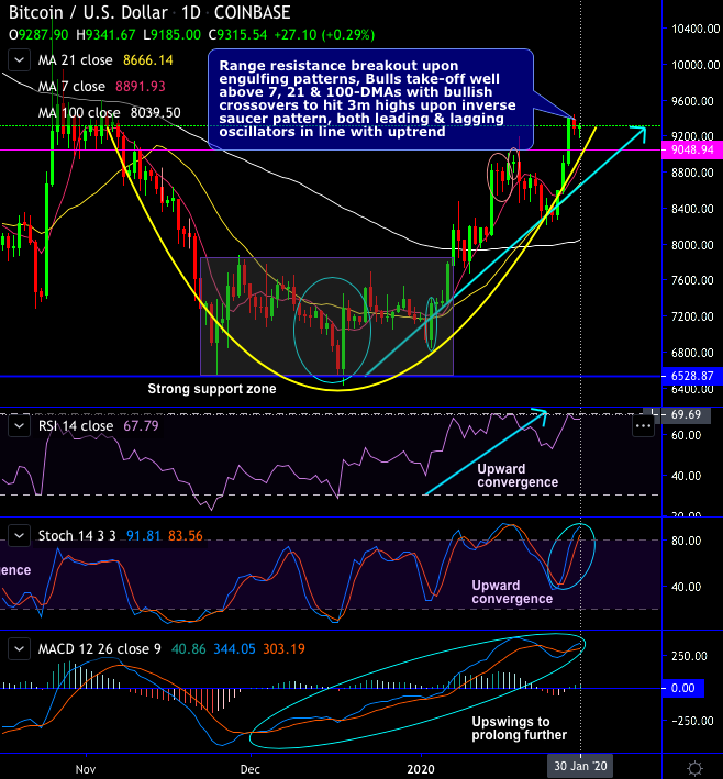 Bitcoin price has been rallying above the $9k mark, surged to $9,439 level which is a new 3-months high intensifies the prevailing uptrend. Thereby, it has shown a rock solid 30% price gains in New-Year series.