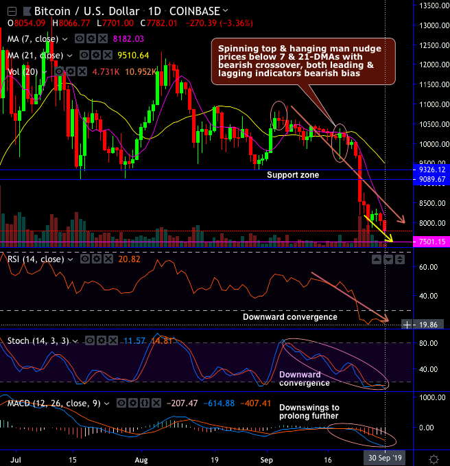 Bitcoin price sinks below $8k mark in major exchanges creates renewed short-term selling opportunities.