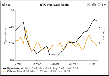 Usually, Put/Call ratio of below 0.7/0.8 has been perceived as a bullish indicator. The Put/Call ratio for Bitcoin Options is smack in the middle of that range suggesting that traders are poised for a price reversal.