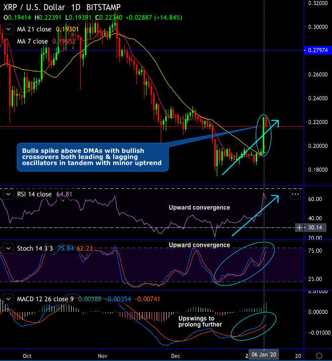 Ripple price (XRPUSD) has surged considerably yesterday, spiked from the day lows of 0.19391 to the day highs of 0.22391 levels. Thereby, the pair has gained about 15% in a single day. What drives such a vigorous bullish rallies? Well, the upswings are owing to the constructive news that Binance Futures has launched perpetual futures contracts for XRP.
