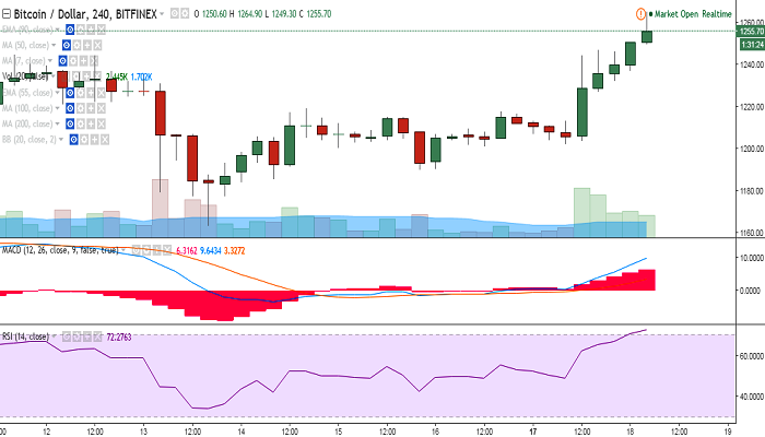 Following the announcement, the trading volumes have notably risen on the Bitfinex exchange. BTC/USD is currently trading at 1256 levels at the time of writing.