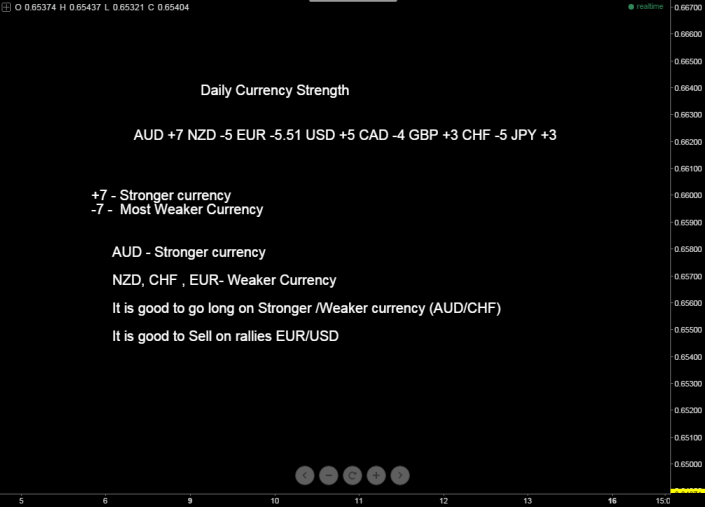 AUD - Stronger currency NZD, CHF , EUR- Weaker Currency Slightly Bullish- JPY, GBP Good to Buy USD/CAD at dips.