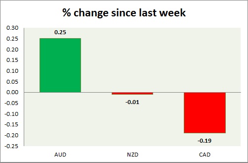 Strength meter (since last week) – Aussie +1.74%, Kiwi +2.01%, Loonie +0.59%