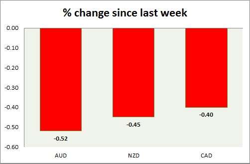 Strength meter (since last week) – Aussie -0.52%, Kiwi -0.45%, Loonie -0.40%