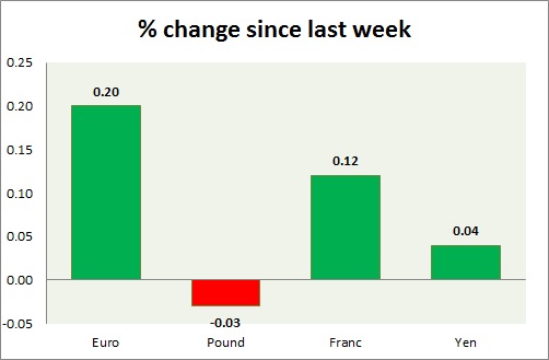 Strength meter (since last week) – Euro +0.20%, Franc +0.12%, Yen +0.04%, GBP -0.03%