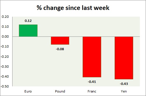 Strength meter (since last week) – Euro +0.12%, Franc -0.41%, Yen -0.43%, GBP -0.08%