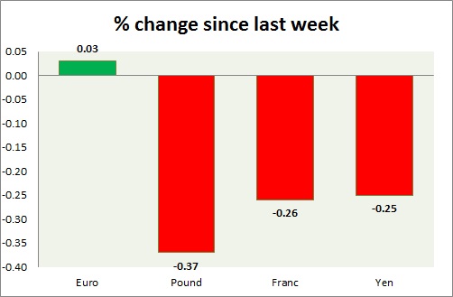 Strength meter (since last week) – +0.03%, Franc -0.26%, Yen -0.25%, GBP -0.37%